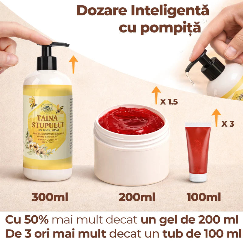 Am încercat mai multe geluri, dar Taina Stupului chiar mi-a plăcut — se absoarbe bine și simți imediat o senzație de confort. Pentru cine are dureri musculare, îl recomand tuturor.